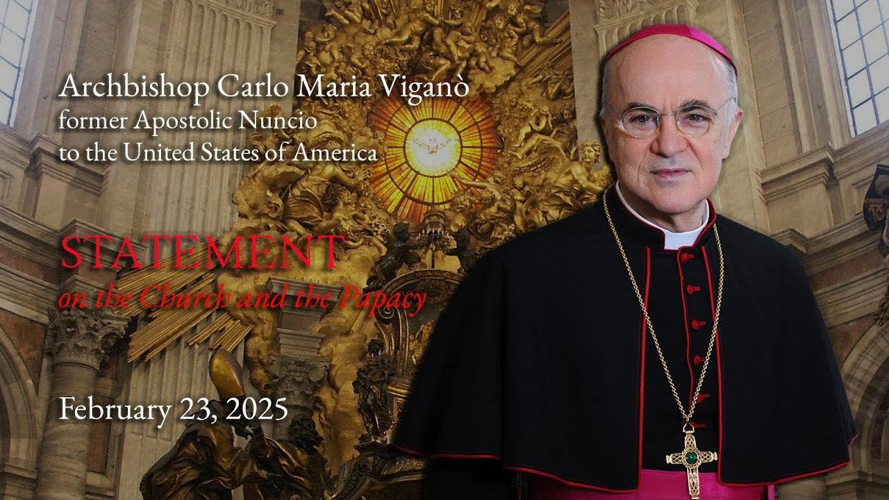 Amid the DOGE revelations of the US Government's vast and seditious theft from the US Taxpayer and with the "Fall of the Berlin Wall for the Khazarian Mafia" in the Oval Office last Friday, the astounding pronouncements of excommunicated Archbishop Carlo Viganò should not get lost in the tsunami.