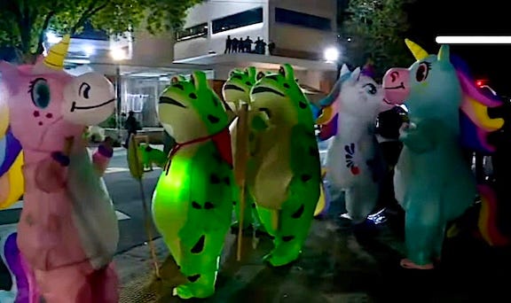 They countered with their own attempt to bait, frame and shape the way people perceive domestic unrest with visible non-threat displays and playful optics.